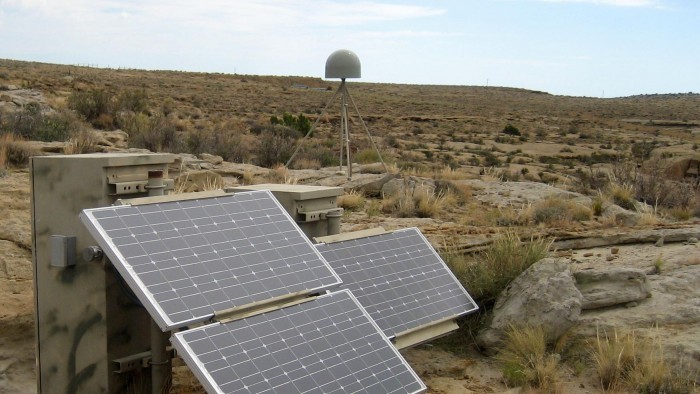 位于新墨西哥州北部的沙漠中,GPS站点P028的数据有助于对格兰德河裂谷的地质研究。大陆裂谷是一个地球地壳被非常缓慢地拉开的地方。