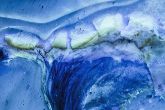 荧光下的“煎饼鸟”头骨碎片 邢立达 供图