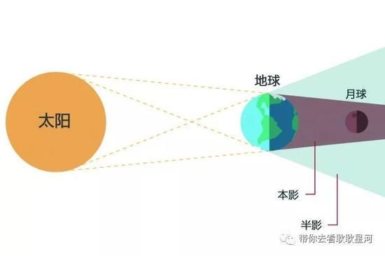 具体来说,月食是月球进入地球遮挡住太阳光所产生阴影区域内,我们看到它表面亮度变暗的现象。地球的阴影区域又分为太阳光几乎完全照不进来的本影,和部分太阳光可以照进来的半影。地球的本影是一个锥形区域,在月球轨道的38万公里处,地球本影的直径仍相当于月球的2.5倍左右。所以当地球和月球的中心大致在同一条直线上,月球就有可能完全进入地球的本影,从而产生月全食。而如果月球只有部分进入地球的本影,就发生月偏食。如果月球进入半影区域,太阳的光也可以被遮掩掉一些,这种现象在天文上称为半影月食。由于在半影区阳光仍十分强烈,月面的光度只是极轻微减弱,多数情况下半影月食不容易用肉眼分辨。而一次月全食的前后一定包含月偏食和半影月食的过程。